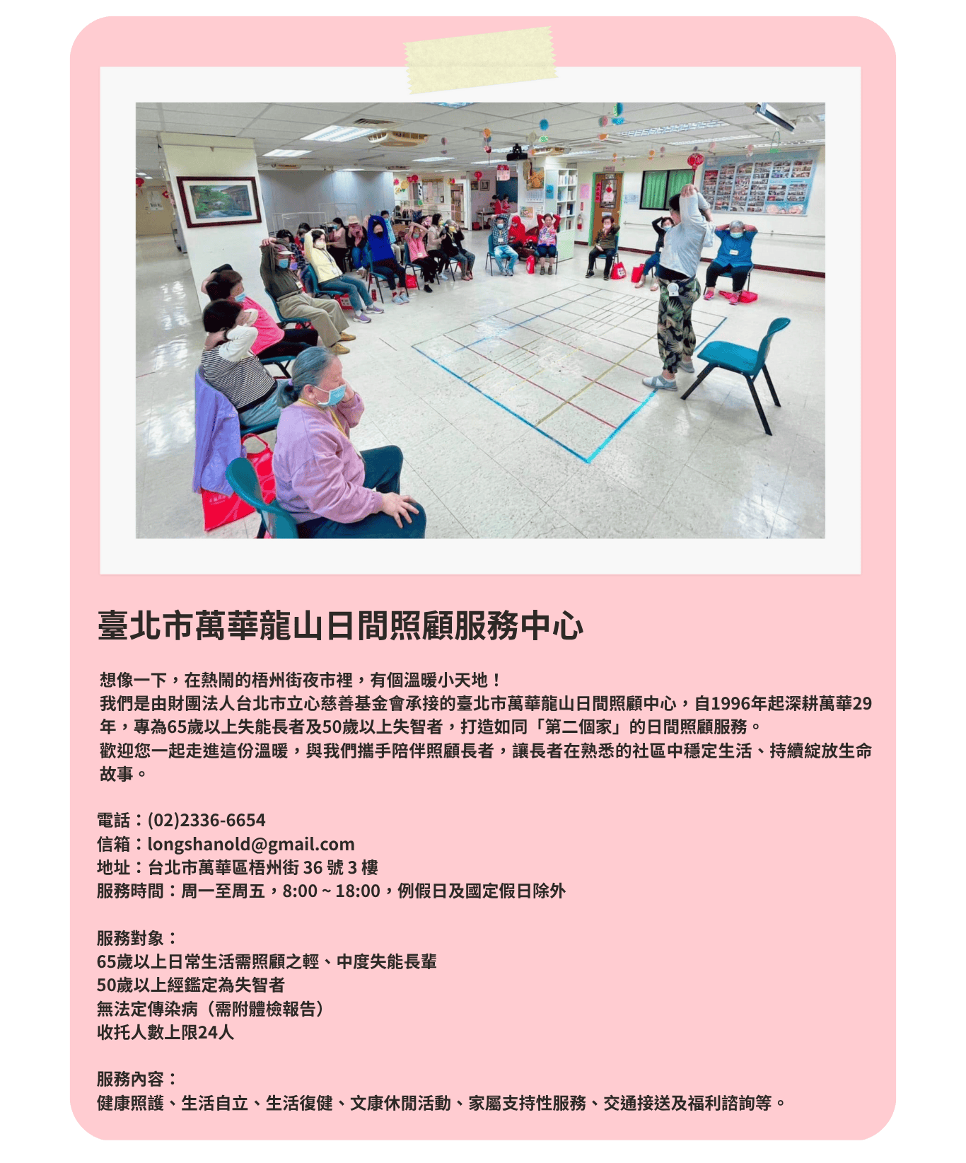 臺北市萬華龍山日間照顧服務中心